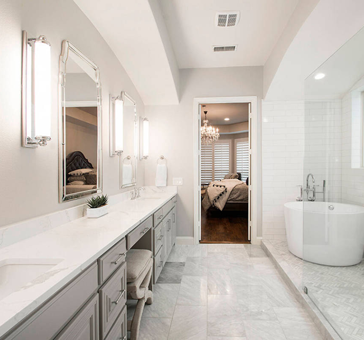 Upgrade your vanity, add double sinks, or install sleek built-in storage for a clutter-free space.